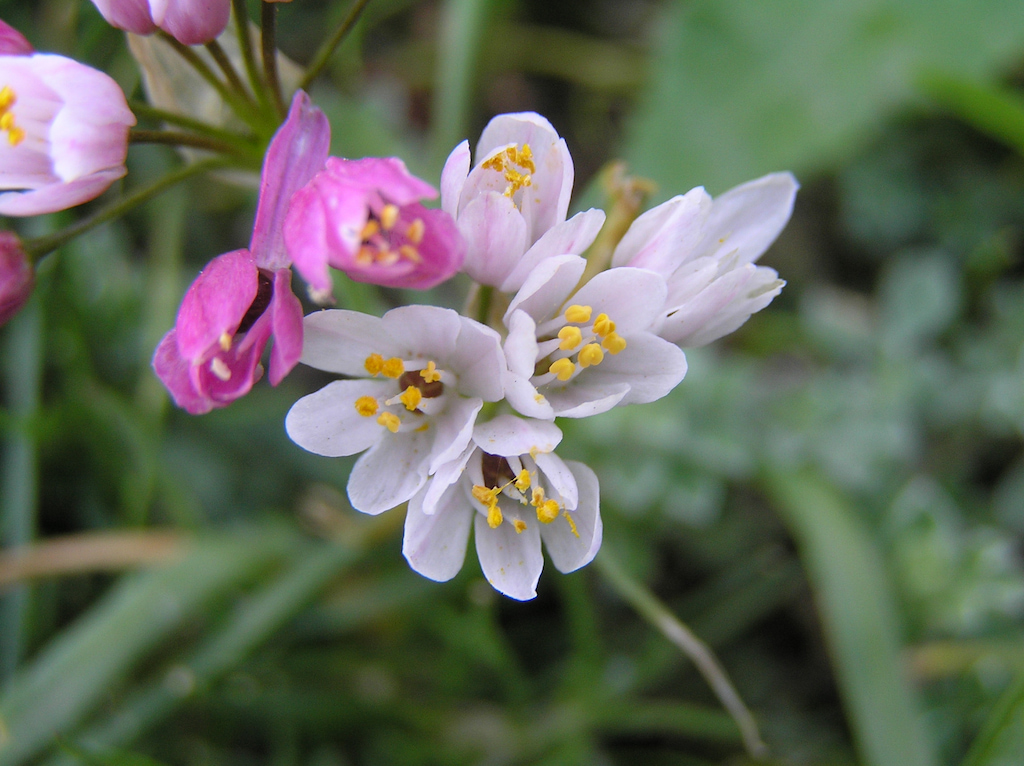 Planta bulbosa bastante variable, de 10-40 cm de altura, incluyendo la inflorescencia. Bulbo oblongo-oval, de 5-15 mm de diámetro; la túnica exterior, de color marrón grisáceo presenta pequeños hoyuelos muy finos, mientras que las capas internas son de color blanco plateado y suelen tener pequeños bulbos en la base. Tallo con la base envuelta en una vaina foliar de 3-12 cm de largo. La mayoría de las plantas tienen 2-3 hojas (en raras ocasiones hasta 8). El limbo foliar, de 4-40 cm de largo y de 2-10 mm de ancho, es glabro o finamente ciliado en la base (solo unos pocos centímetros de longitud), con un borde muy finamente serrado. Inflorescencia fascicular a subfascicular, erecta sobre un escapo cilíndrico y conspicuo, en forma de umbela, con 20-25 flores normalmente, aunque pueden ser solo 5-7 o hasta 50. Segmentos del perigonio blancos a rosados, existiendo a veces toda una gama de colores en la misma población. Estambres iguales o más o menos iguales que el perigonio. Fruto en cápsula trilocular, nornalmente con dos semillas triquetras, de 2-3 mm de largo en cada lóculo.