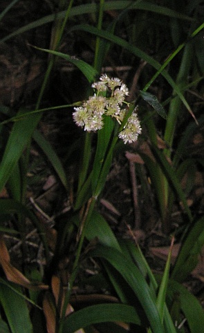 Planta perenne de hasta 90 cm de altura, rizomatosa, con estolones. Hojas basales, lanceoladas, planas, de 18-30 x 1,3-1,9 cm, lineares, planas y a menudo onduladas, estrechándose hacia el ápice, de color verde lustroso o rojizo-morado cerca de la base, con largos pelos blancos cerca de la base. Inflorescencias alargadas y densas, péndulas; ramas principales con antelas de racimos de 3-8 flores. Bractéolas ovado-lanceoladas, escasamente ciliadas. Tépalos 6, más o menos iguales, agudos, glabros, de unos 3 mm de largo, oblongo-lanceolados, con venas prominentes, de color blanco-plateado. Fruto en cápsula, más o menos ovoide, acuminada, de color castaño claro. Semillas pequeñas, elipsoides, con carúncula.