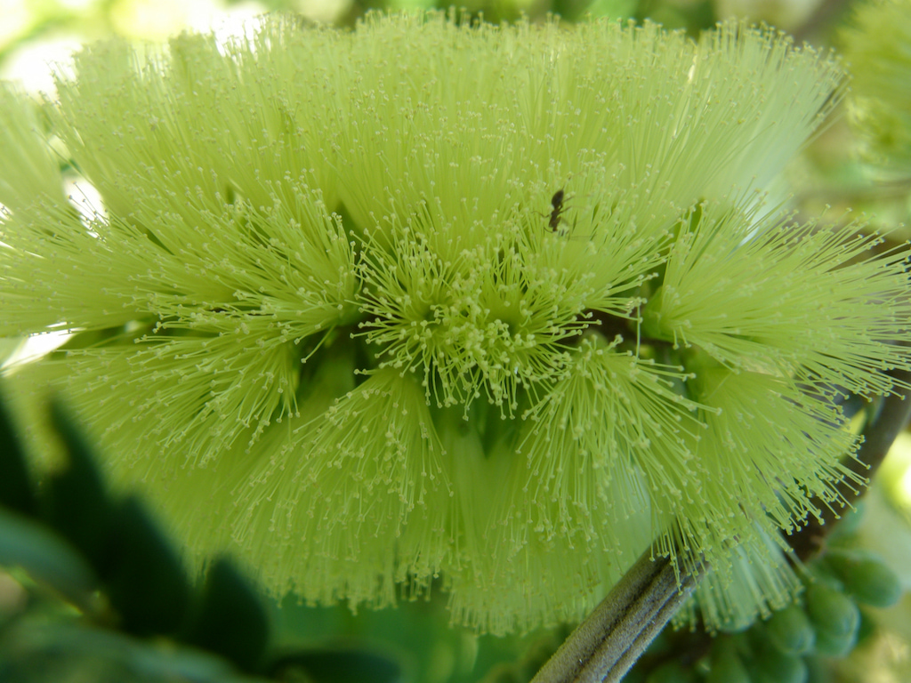 Árbol o arbusto perenne, sin espinas, de 2,4 a 15,0 m de altura. Hojas bipinnadas, de 10-20 cm de largo, con 7-12 pares de pinnas, cada una de ellas con 20-35 pares de foliolos de ápice redondeado y glabros; raquis con una glándula conspicua justo debajo de la unión del par de pinnas superiores. Estípulas lineales, caducas. Inflorescencias en racimos pedunculados, axilares, similares a cepillos de botella, de color crema. Flores bisexuales, pediceladas, generalmente pubescentes, subtendidas por brácteas. Cáliz gamosépalo, 5-valvado. Corola gamopétala, 5-valvada. Estambres numerosos, unidos en un tubo en la base; anteras cuadrangulares, diminutas, que se abren por 2 hendiduras. Ovario solitario. Vaina marrón, cartaginosa, plana, recta, no segmentada, dehiscente a lo largo de ambas suturas. Semillas subcirculares-elípticas a oblongas, planas a convexas.