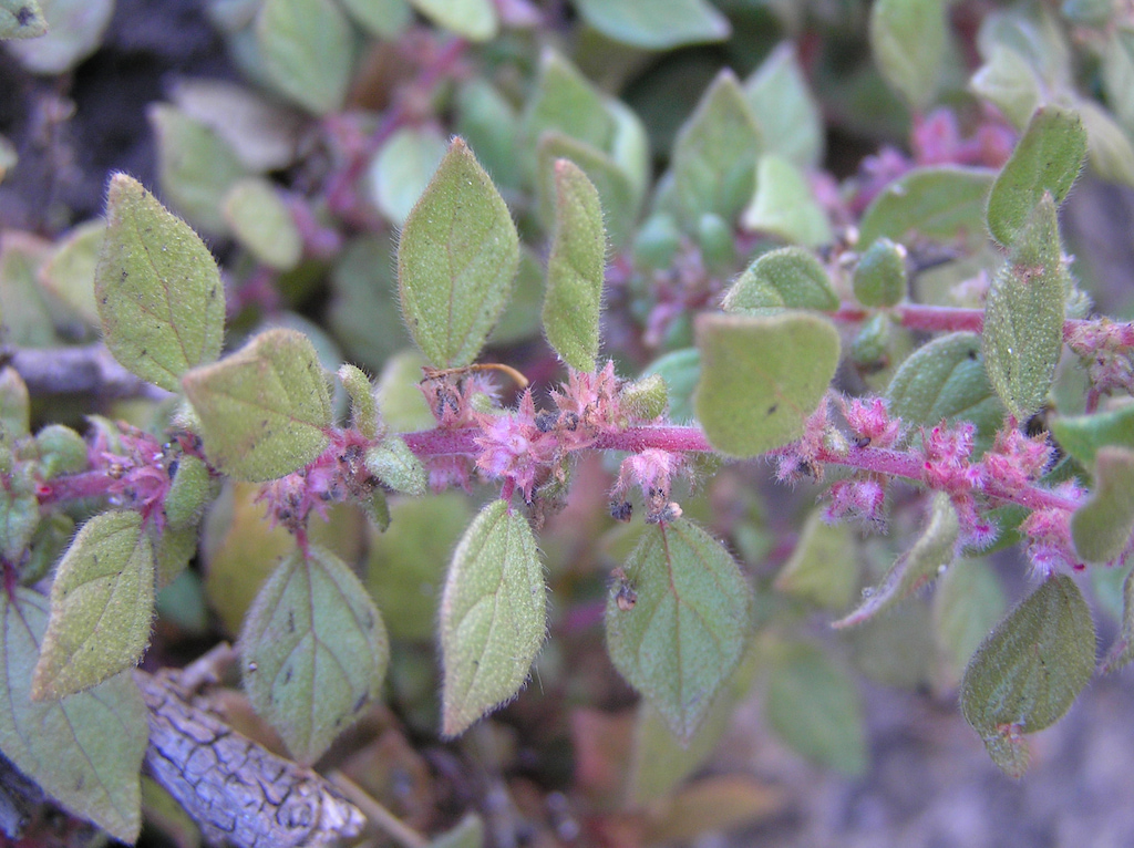 Arbusto pequeño, de hasta 30 cm de altura, con ramas postradas o colgantes, delgadas y leñosas, vellosas, con pelos grises extendidos, sin pelos urticantes. Hojas subopuestas, de 8-20 x 3-15 mm, ovado-lanceoladas, ligeramente romboidales, agudas, pelosas. Inflorescencias en glomérulos axilares subsésiles; involucro regularmente con tres flores, formando un tubo corto que abraza la base de la flor femenina, con estambres estériles a ambos lados; lóbulos alargados, filiformes, muy peludos, erectos y presionados contra la flor femenina, con los estambres desprendidos; perigonio de las flores masculinas campanulado, con 4 dientes, con lacinias linear-lanceoladas, escariosas, blancas y filiformes en el ápice; perigonio de las flores femeninas elíptico, tubular, con 4 dientes cortos y filiformes. Estigma alargado, sublanceolado. Aquenios brillantes, de color marrón oscuro.