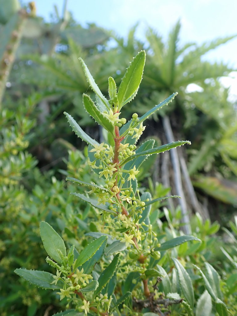 Endemisno macaronésico, que vive en Canarias, Madeira e islas Salvajes. Forma parte de matorrales xéricos dentro del cardonal-tabaibal, en malpaíses, laderas, barrancos, riscos y andenes. También puede alcanzar zonas de bosque termófilo o de monteverde, entre 200-1000 m s.n.m.