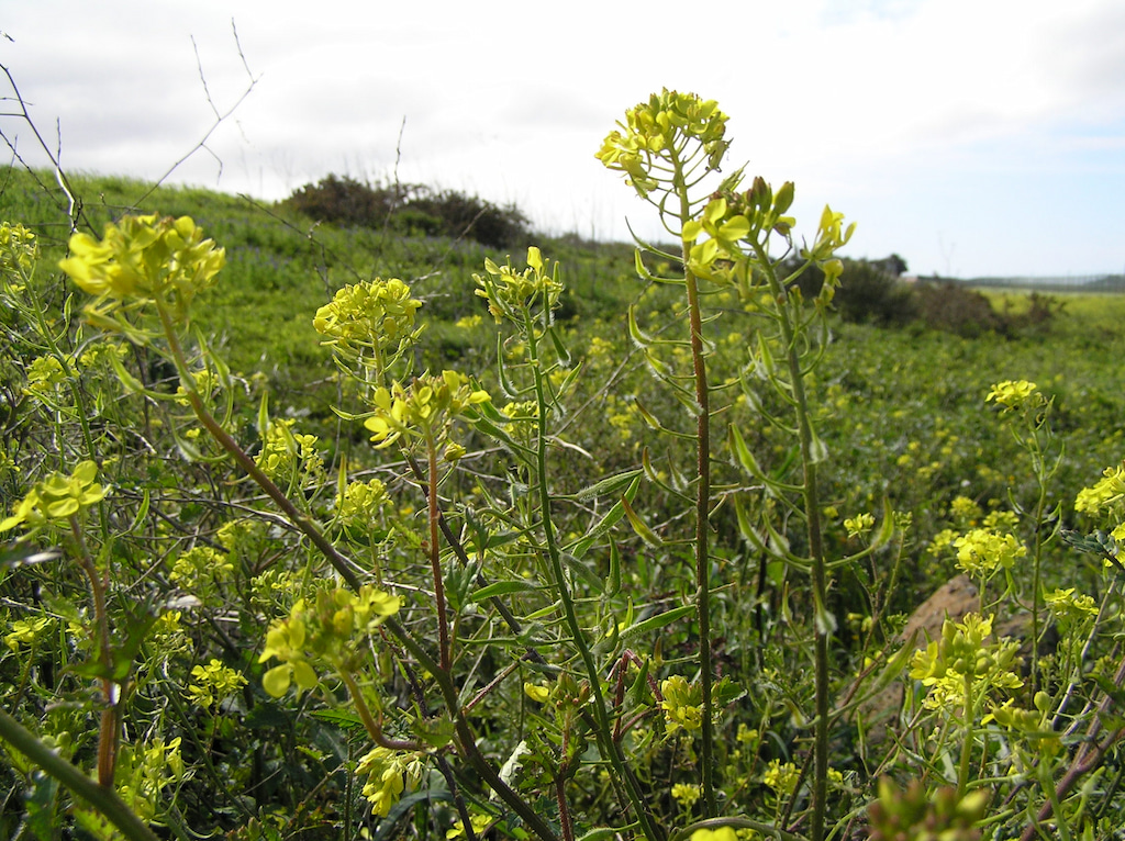 Planta herbácea anual. Tallos de hasta 100 cm, ramificados, híspidos, a veces glabrescentes. Hojas pecioladas, lirado-pinnatisectas o 2-pinnatisectas, con lacinias estrechas en parte irregulares, normalmente híspidas, a veces algo escábridas; las basales, generalmente arrosetadas; las medias y superiores, menos divididas. Inflorescencia en racimos de 15-50 flores. Pedicelos de 5-8 mm en la antesis, 7-10 mm en la fructificación, de patentes a erecto-patentes. Sépalos patentes, de 4-7 mm, más o menos híspidos, verdes o de un verde amarillento, Pétalos unguiculados, con venación cladadroma poco conspicua, amarillos, de 7-12 mm. Fruto en silicua de 20-40 x 3-6,5 mm, de patente a erecto-patente; porción valvar de 10-20 mm, con 2-5 semillas en cada lóculo, dehiscente, de totalmente glabra a densamente híspida; rostro de 15-30 mm, ensiforme, comprimido lateralmente, casi tan ancho o un poco más que las valvas, con abultamientos en correspondencia con las (0)1(2) semillas que puede contener. Semillas de 2-3,5 mm, esféricas, de blancas a pardas y más o menos oscuras, dispuestas en una fila dentro de cada lóculo.