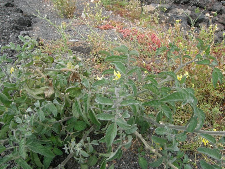 Solanaceae Datura innoxia Datura stramonium Hyoscyamus albus Lycium intricatum subsp. intricatum Nicandra physalodes Nicotiana paniculata Salpichroa origanifolia Solanum bonariense Solanum laxum Solanum lidii Solanum lycopersicum Solanum vespertilio subsp. vespertilio Withania aristata